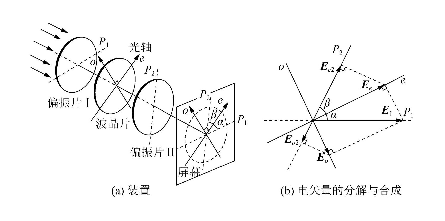 如图所示在两偏振片Ⅰ,Ⅱ之间插入一块厚度为 d 的波晶片,三元件的平面彼此平行,光线正入射到这一系统中。