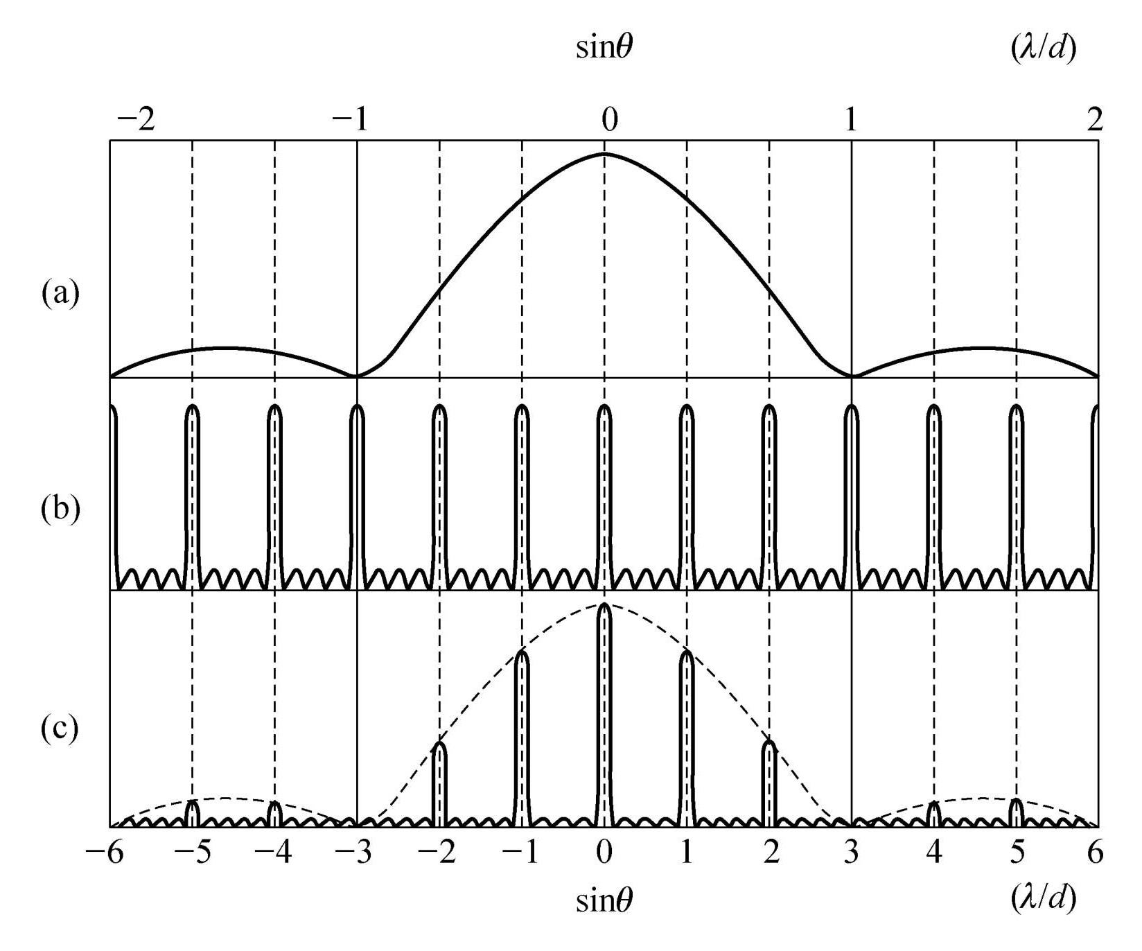 I θ = A 0 2 ( sin α α ) 2 ( sin N β sin β ) 2 I_{\theta}=A_{0}^{2}\left(\frac{\sin \alpha}{\alpha}\right)^{2}\left(\frac{\sin N \beta}{\sin \beta}\right)^{2}