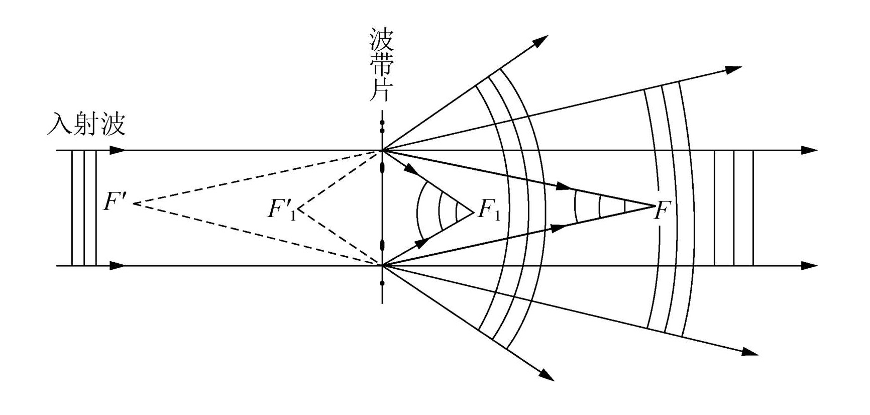 此外,每块波带片除有几个实焦点外,在对称的位置上还存在一系列虚焦点。菲涅耳波带片是有多个虚、实焦点这一事实告诉我们,它所产生的衍射场虽很复杂,但它包含有一系列会聚的和发散的球面波成分,当然还有按几何光学规律直进的平面波成分。