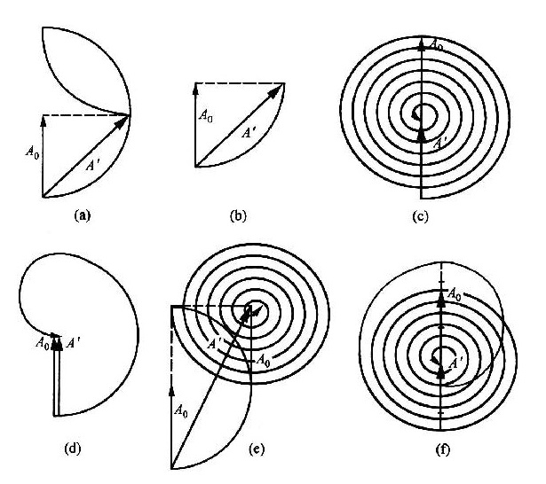 无穷细的分割波前,可讨论任意非整数个裸露波带情况。每个半波带对应1/2圈。扇形遮挡后,改变振幅,而非强度。